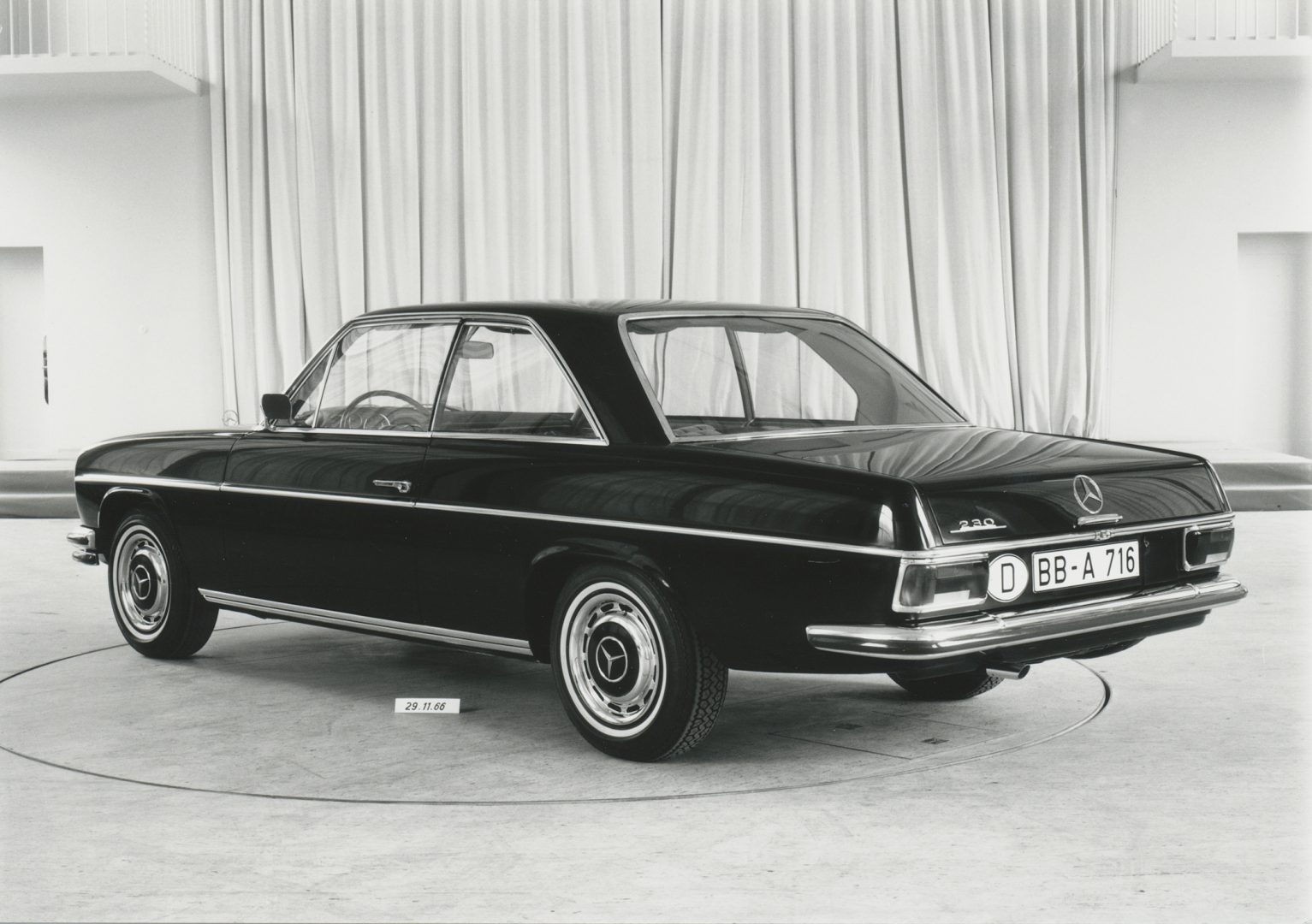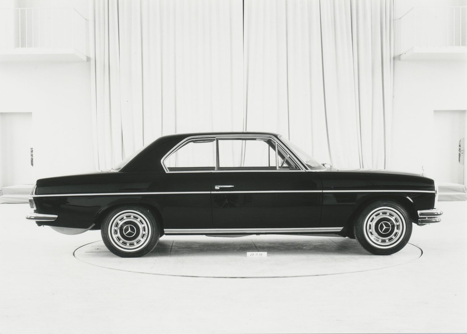 En 1960, el Dr. Fritz Nallinger, jefe de desarrollo de Mercedes, propuso poner fin a esta política y dividir la gama de turismos en dos áreas. Comenzaba así el nacimiento de la serie W114 y W115 “Stoke Eight”, la primera designación era para modelos de 6 cilindros y la segunda los equipados con motores de 4 cilindros. El 11 de diciembre de 1964 se dio luz verde a su desarrollo y el 3 de septiembre de 1965, Nallinger presentó dos diseños de coupé al consejo de administración para su deliberación.