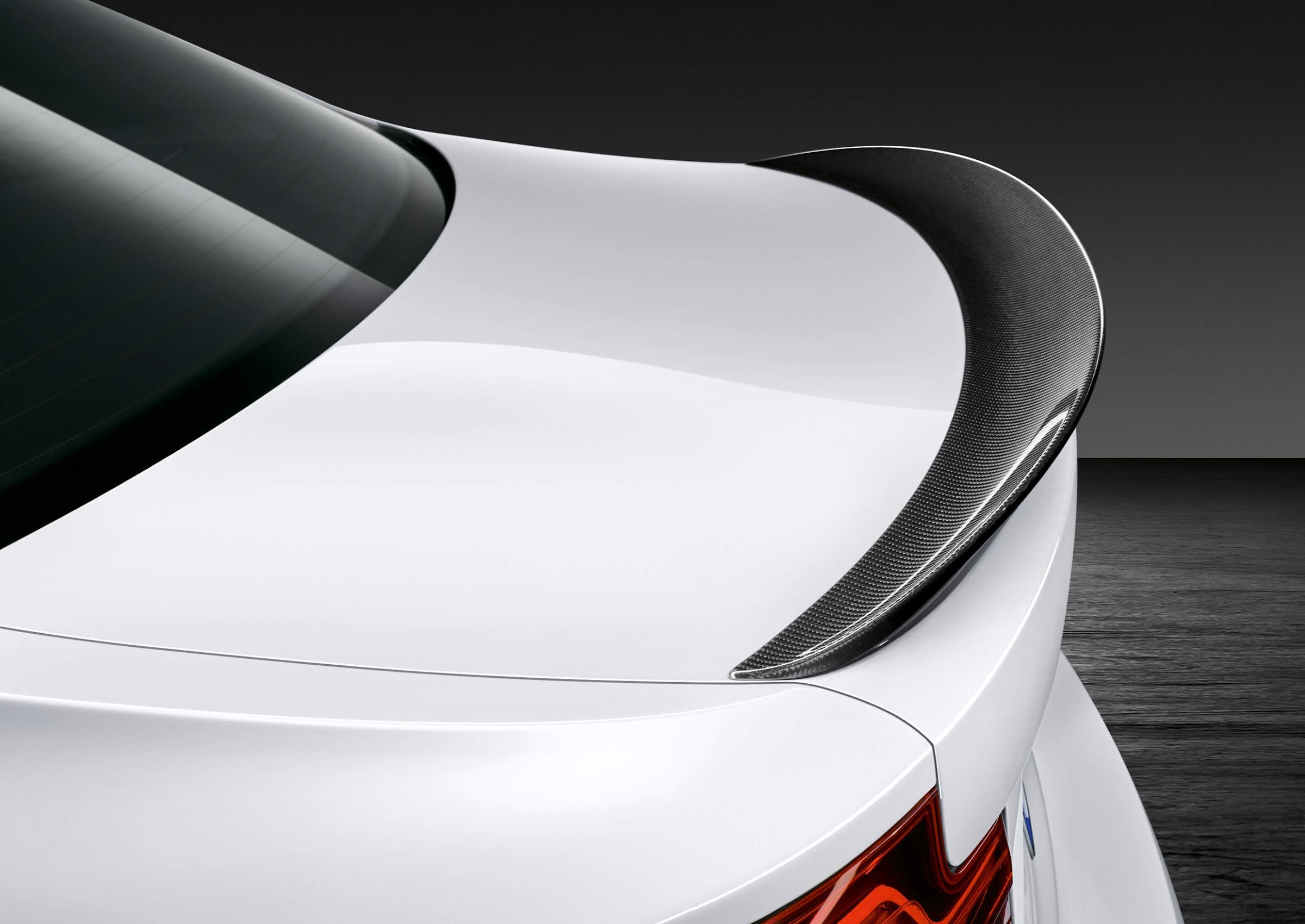 Hay disponible una amplia gama de componentes exteriores M Performance Parts que enfatizan el diseño y resaltan sus cualidades aerodinámicas. Estas piezas de fibra de carbono están elaboradas casi en su totalidad a mano y buscan mejorar el atractivo visual. Están disponibles los siguientes accesorios M Performance Parts: splitter delantero en fibra de carbono, rejilla con forma de riñón en fibra de carbono, branquias de las tomas de aire laterales en fibra de carbono (derecha/izquierda), cubiertas de los espejos en fibra de carbono, acabado del umbral de puerta en fibra de carbono, extensiones del faldón lateral en fibra de carbono, difusor trasero en fibra de carbono y alerón trasero en fibra de carbono.