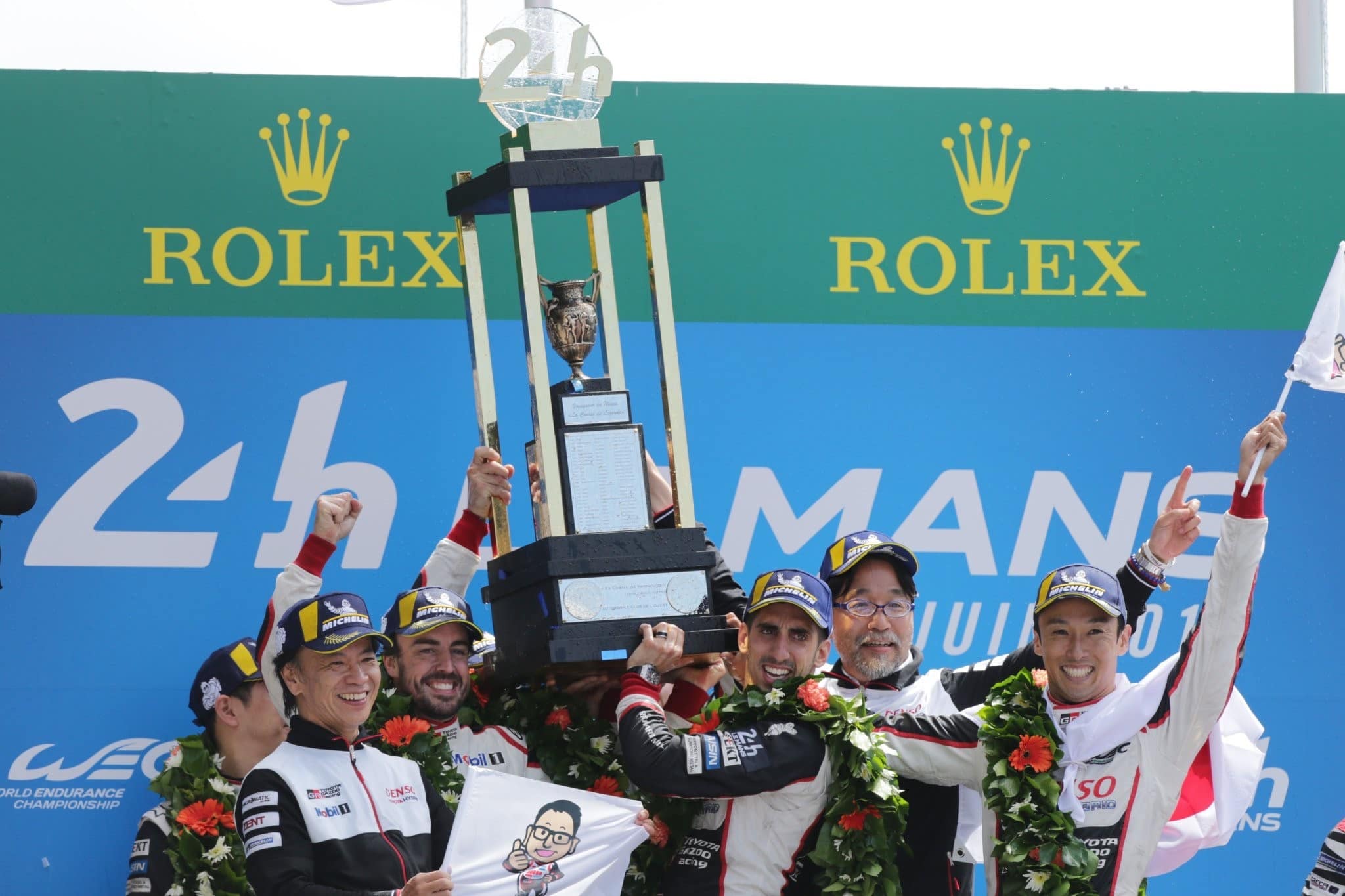 Histórica victoria de Toyota y Fernando Alonso en las 24 Horas de Le Mans. En el vigésimo intento de triunfo en Le Mans, Toyota alcanzó la victoria y lo hizo firmando un doblete al copar las dos primeras posiciones del podio. La pole position obtenida el jueves por Fernando Alonso, Sébastien Buemi y Kazuki Nakajima, a los mandos del Toyota TS050 HYBRID nº 8, fue el mejor presagio y una carrera perfecta por parte de los tres pilotos les permitió pasar a la historia al lograr la primera victoria de Toyota en Le Mans.