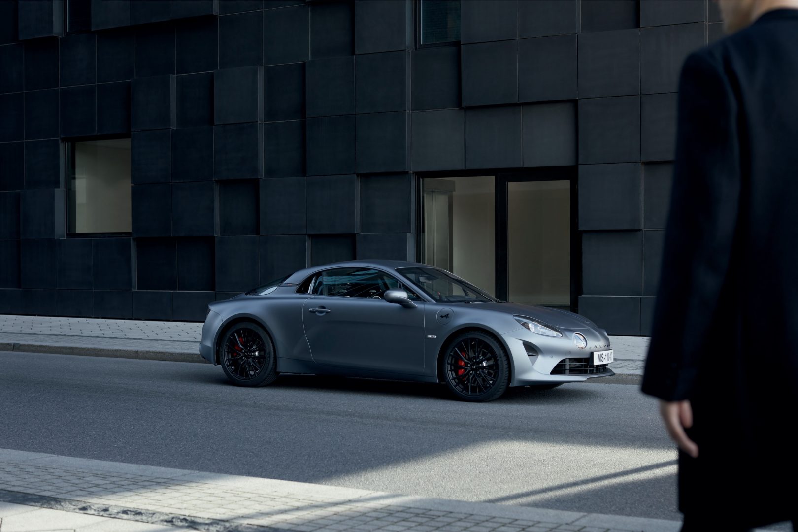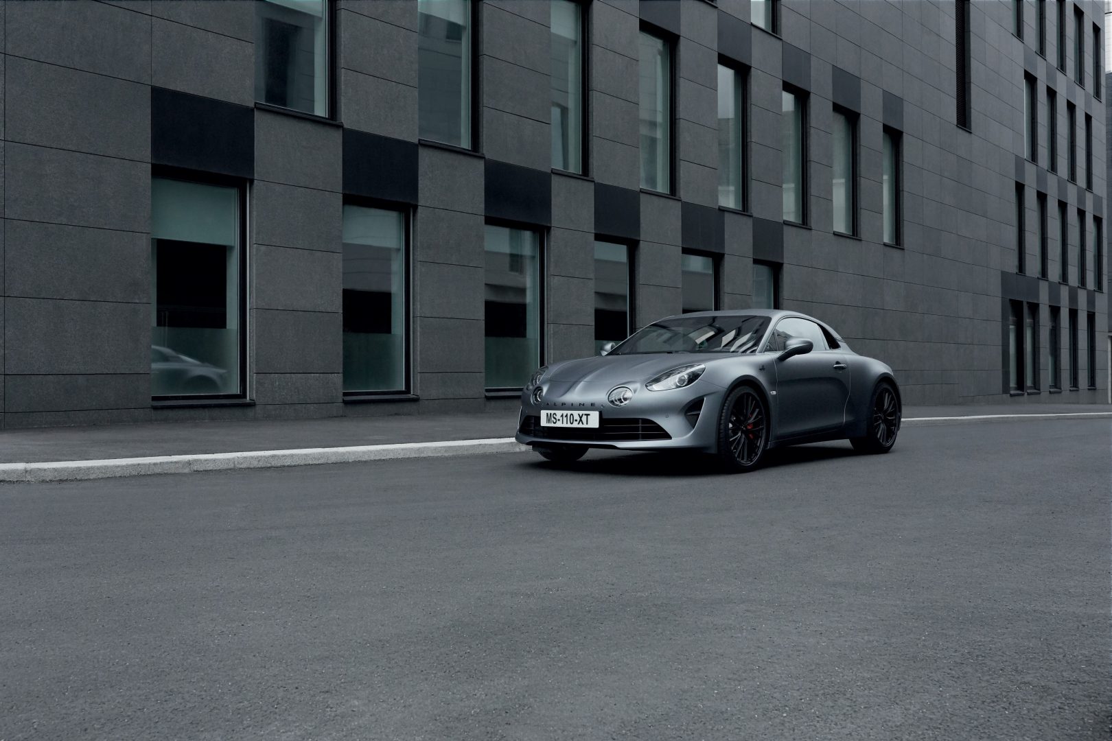 Exteriormente el A110S se diferencia del A110 en detalles como las inserciones en fibra, emblemas de versión, pinzas de freno pintadas en naranja o las llantas en acabado negro; además ofrece una pintura opcional exclusiva llamada Gris Tonnerre (en fotografías). También opcionalmente ofrece un techo de fibra de carbono con un acabado brillante que reduce el peso conjunto del vehículo en 1,9 kg. Esta versión anuncia un peso de 1.114 kg.
