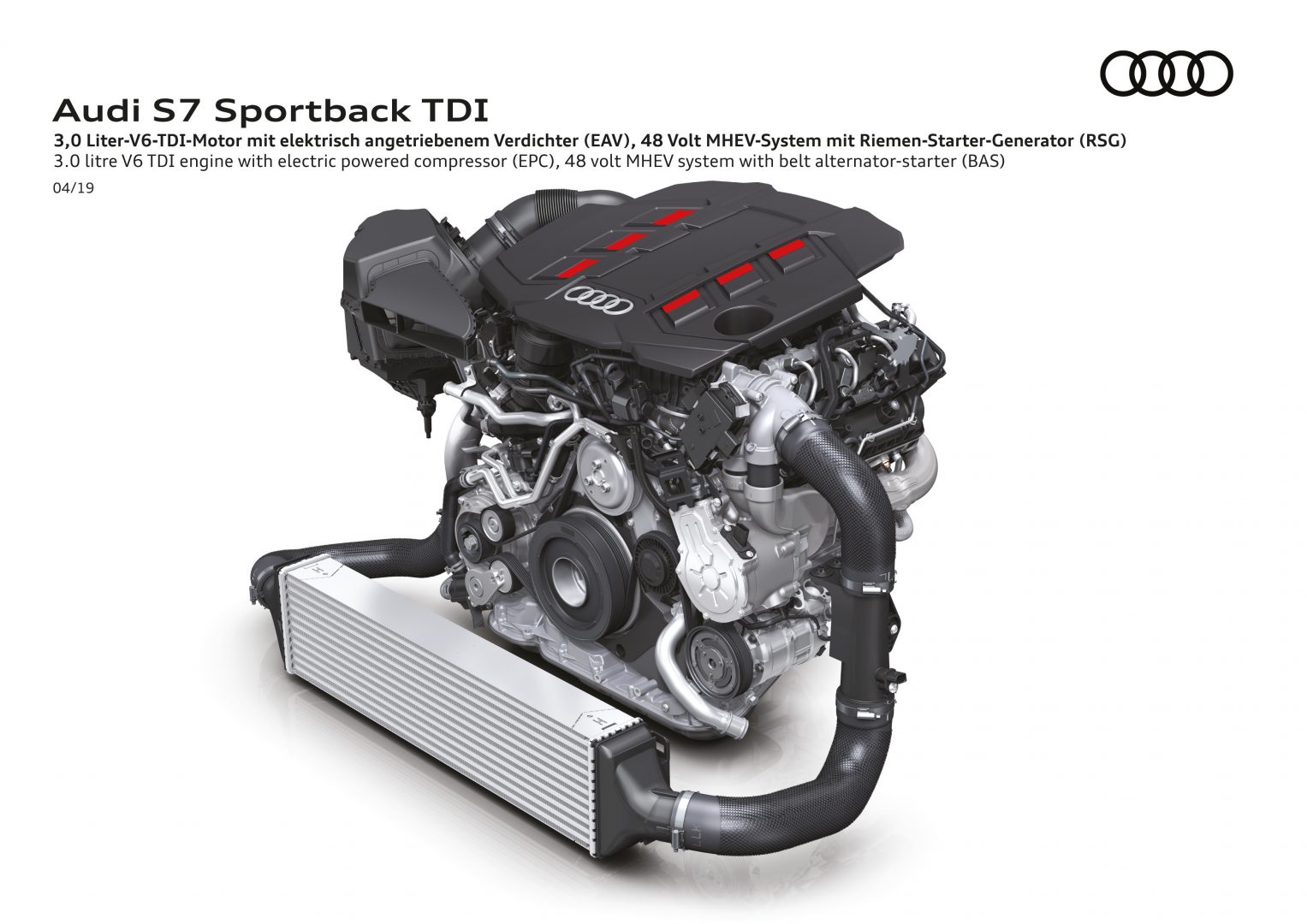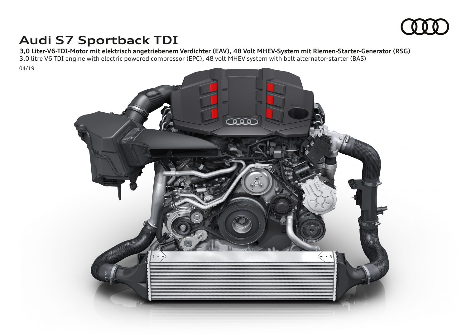 Audi incorpora en los nuevos S6 y S7 la hibridación leve combinada con un compresor accionado eléctricamente (EPC) con un sistema eléctrico principal de 48 voltios en la motorización V6 TDI.