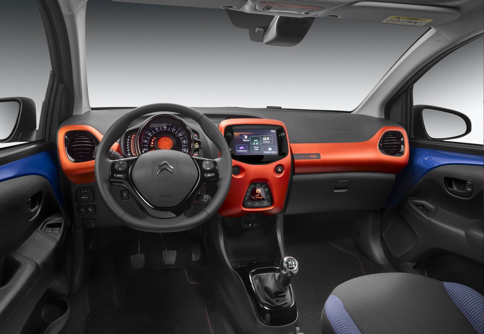 En el interior se añade el Pack Color “Urban Ride” que incluye un guarnecido de tela Square Blue y decoraciones interiores de color Naranja Anodizado en el salpicadero. Además la base de la palanca de cambios y los embellecedores de los aireadores laterales son en color Negro Brillante. Un adhesivo en el salpicadero y las alfombrillas delantera y trasera con el indicativo “Urban Ride” son también de serie en esta edición especial.