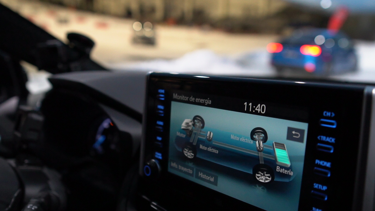 El RAV4 hybrid AWD-i cuenta con un motor adicional sobre el eje trasero, que ofrece hasta un 30% más de par en las ruedas posteriores; en función de las condiciones, el sistema eléctrico de tracción total puede distribuir el par motor entre el eje delantero y el trasero en una relación de entre 100:0 y 20:80.