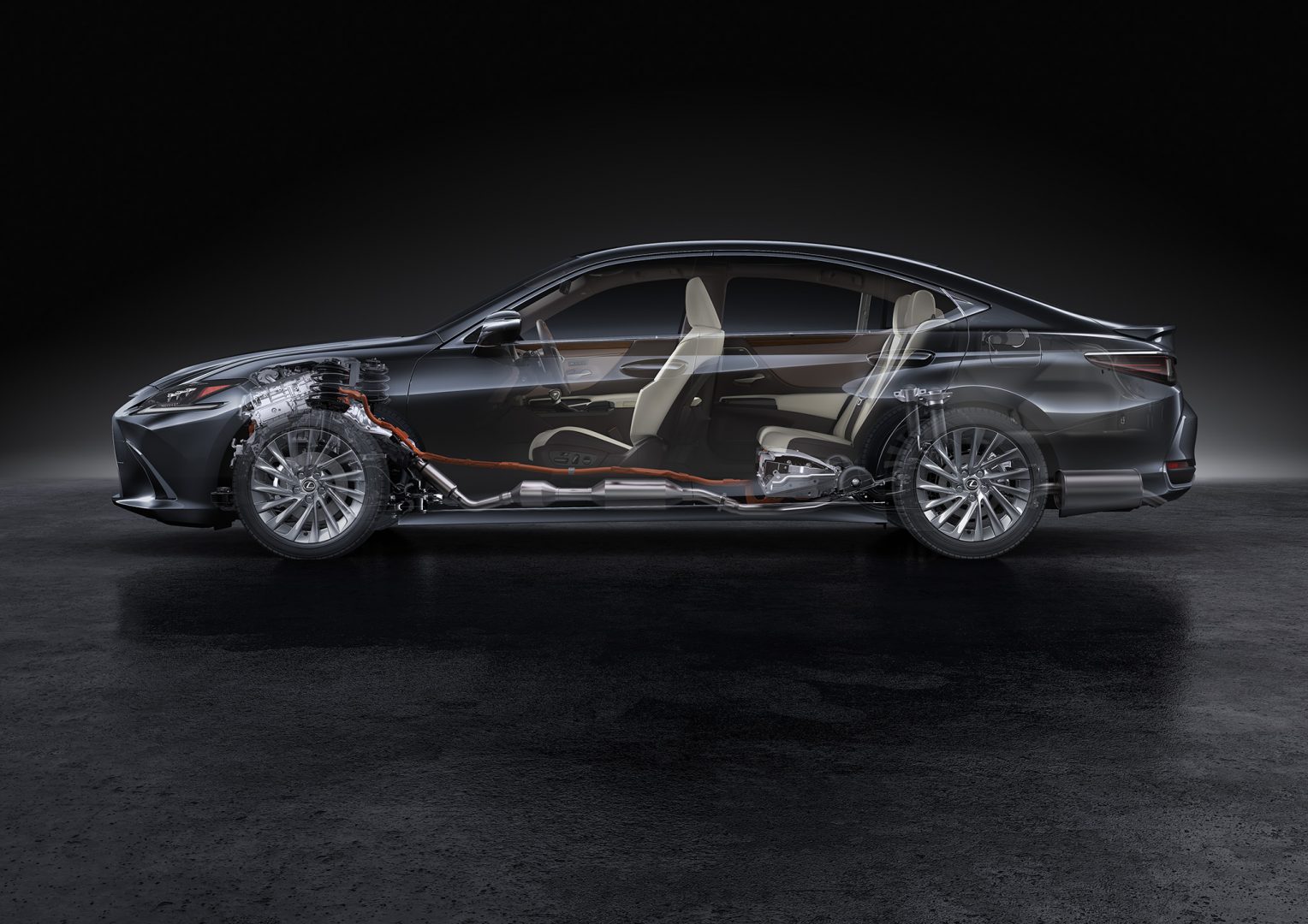 El ES300h híbrido incorpora el sistema de transmisión híbrida de cuarta generación, con un motor térmico con ciclo Atkinson de 2.5 litros de cuatro cilindros que es más compacto, más potente y con sistema híbrido autocargador, la potencia combinada es de 218 cv. La versión híbrida será la única que se venderá en un futuro en nuestro país.