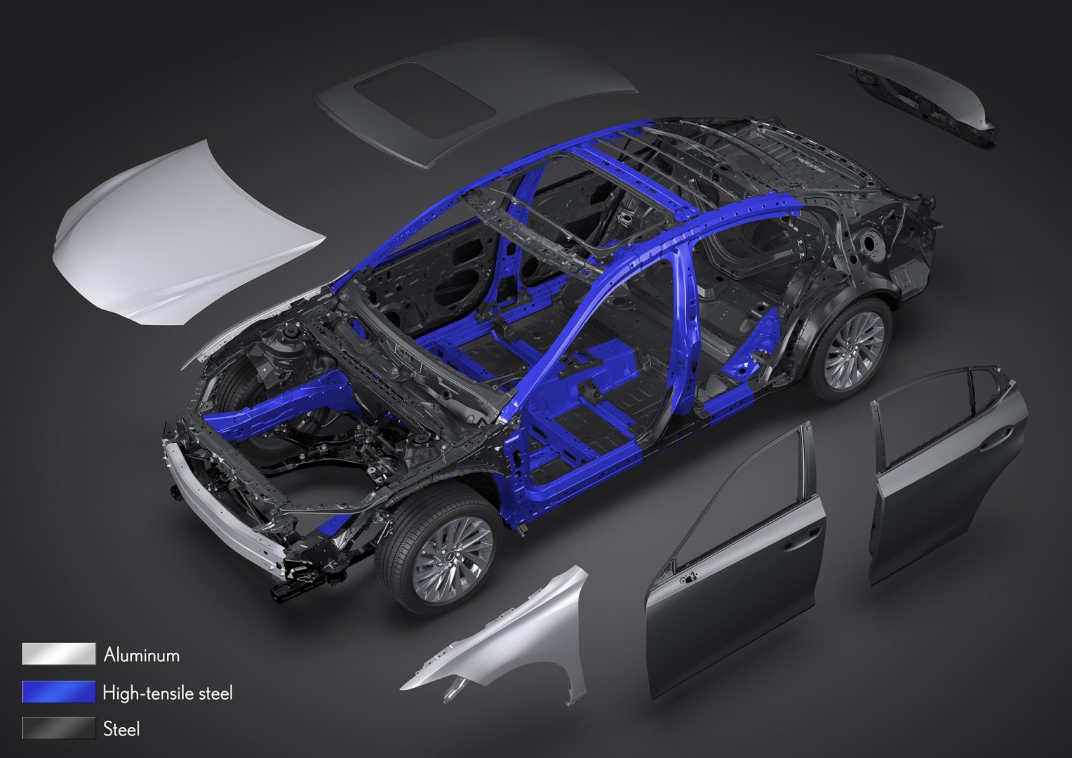 El punto de partida de esta generación del ES fue el nuevo chasis Global Architecture-K desarrollado para los modelos de tracción delantera y que cuenta con distintas calidades de acero de alta resistencia reduciendo el peso en comparación con las plataformas anteriores.