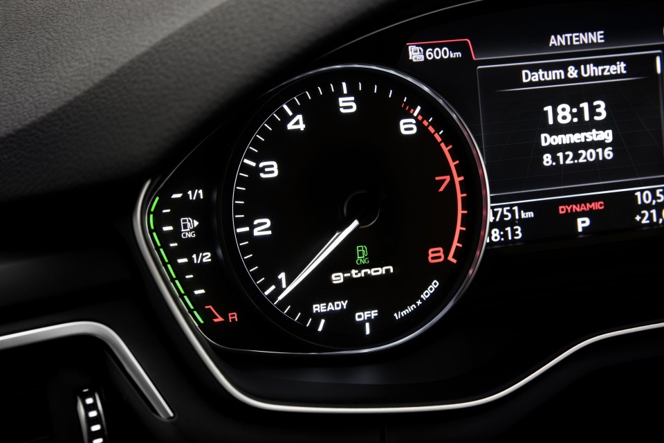 El depósito de gasolina ahora tiene una capacidad de nueve litros en el A3 Sportback y de 7 litros en los A4 Avant y A5 Sportback g-tron, proporcionan una reserva mínima.