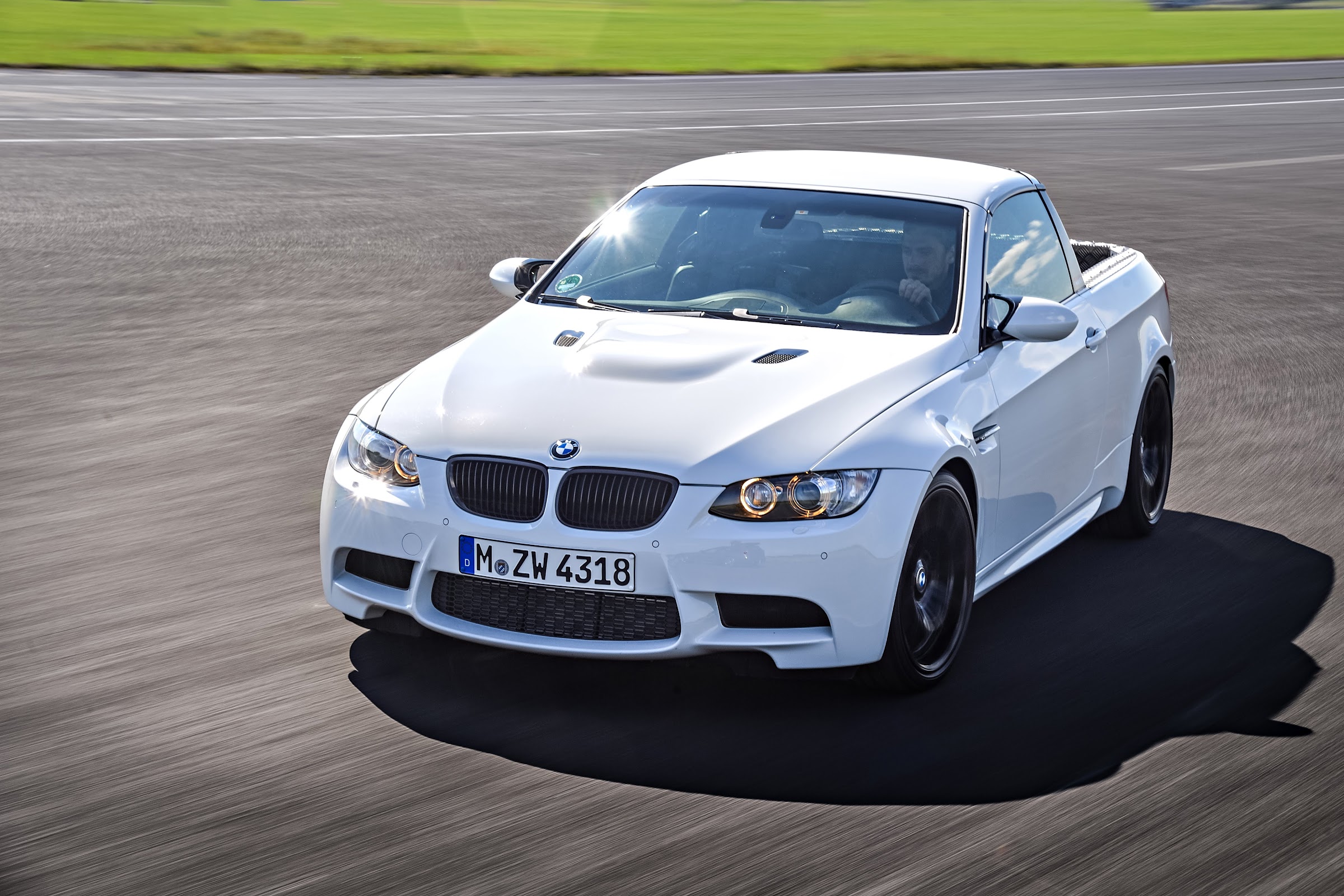 Lo llevaron a Nürburgring días antes para que fuera fotografiado. El rumor corrió rápido y fue aceptado como cierto. El 1 de abril de 2011, BMW lanzaba un comunicado oficial afirmando que el M3 Pick-up sería la cuarta carrocería M3. Con 420cv de potencia tendría una capacidad de carga de 450kg. Si bien, pronto admitieron que todo era una broma, y como su predecesor su uso sería para la fábrica, con una diferencia importante, fue homologado para circular por vías públicas.
