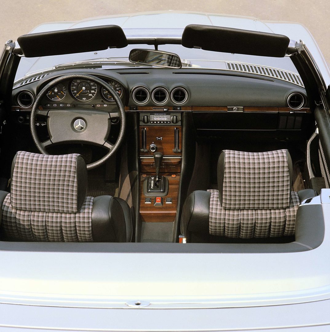 Tampoco Mercedes se olvidó de aumentar el confort, en el SL 107 se ofrecía la posibilidad de incorporar un techo duro removible para las estaciones del año más duras y que le daba una imagen de coupé. Aunque no todo fueron elogios en este sentido, hubo quejas por la incomodidad de las plazas traseras, creando una nueva versión llamada SLC, una versión coupé alargada con mayor espacio interior.
