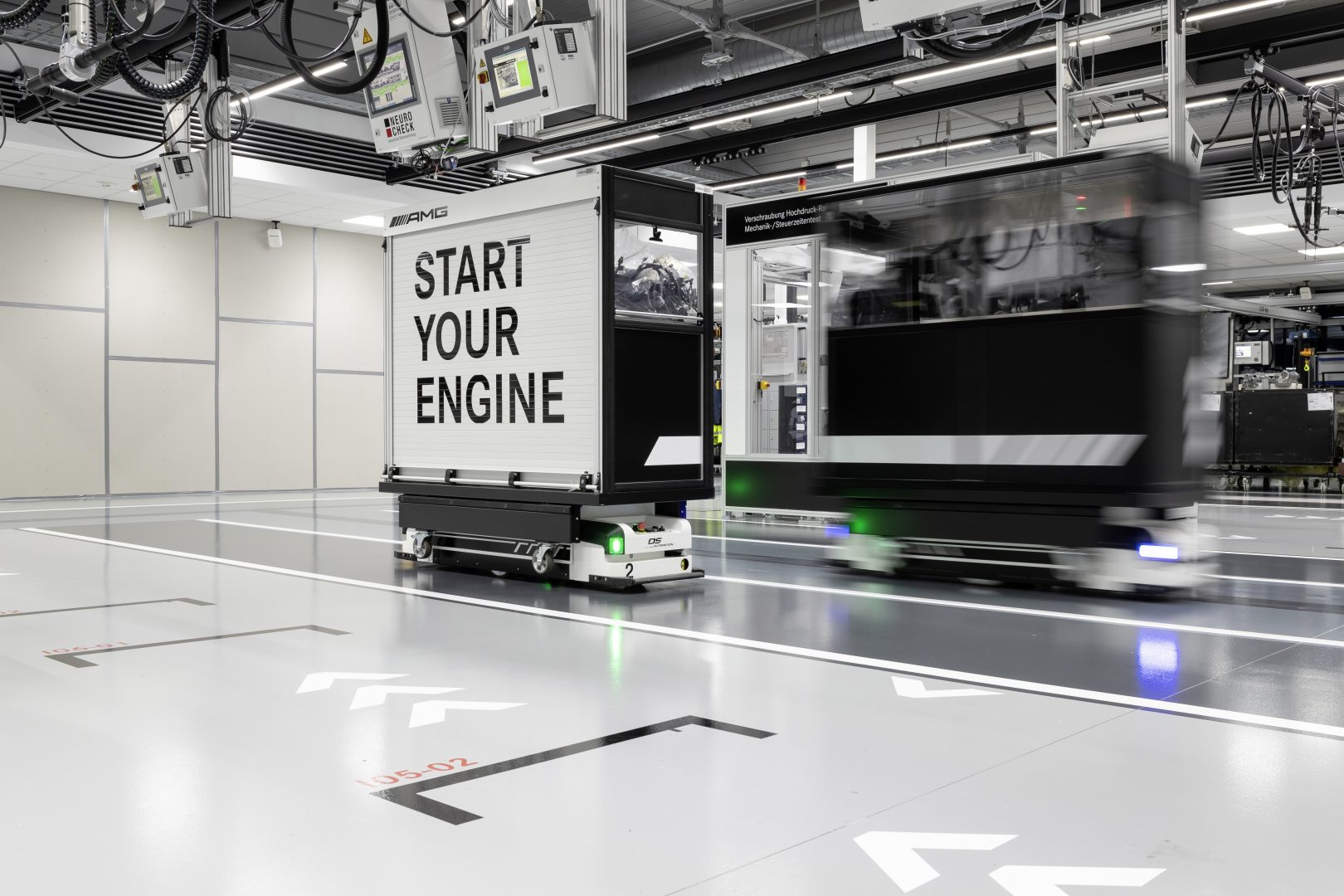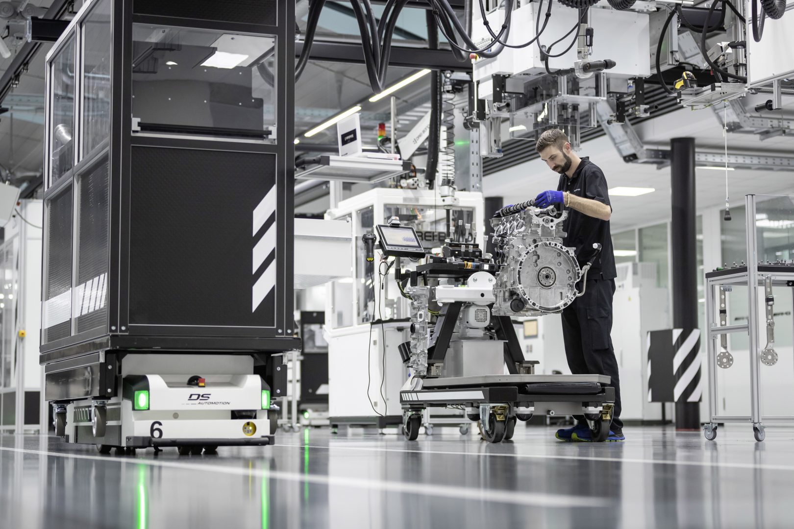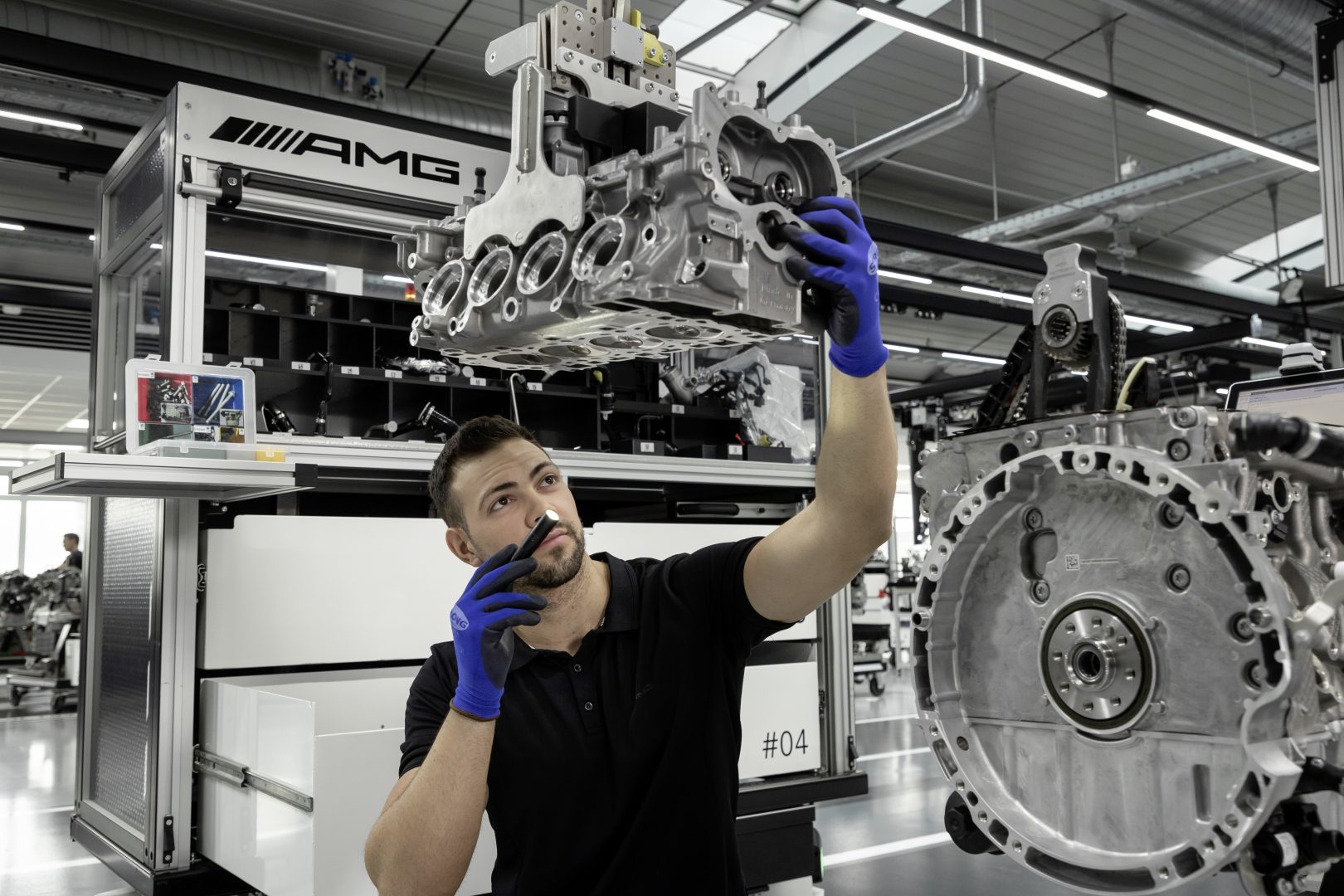 Como se ha señalado la fabricación de este motor responde a la filosofía tradicional de AMG “Un hombre, un motor” pero introduciendo las nuevas tecnologías de fabricación. Así el responsable del montaje dispone de un carro con toda la herramienta e integra una tableta que le facilita asistencia con indicaciones de montaje. Las herramientas utilizadas son del tipo sin cables y con conexión wifi, lo que permite que el montador pueda seleccionar desde su tableta la función exacta que debe realizar, por ejemplo, la máxima presión de atornillado.