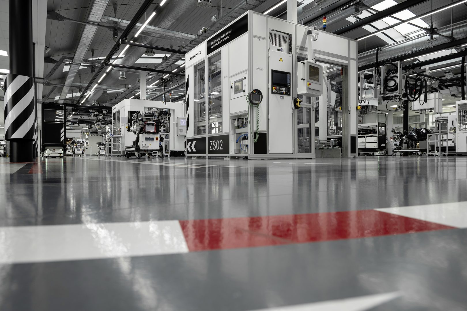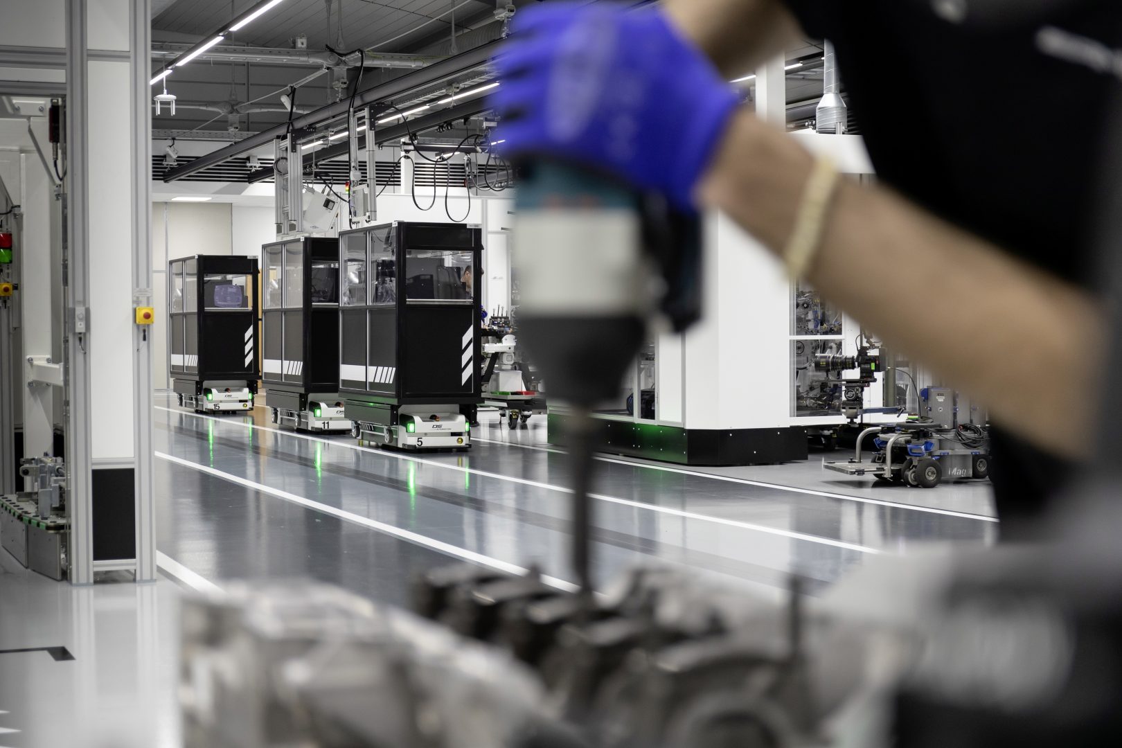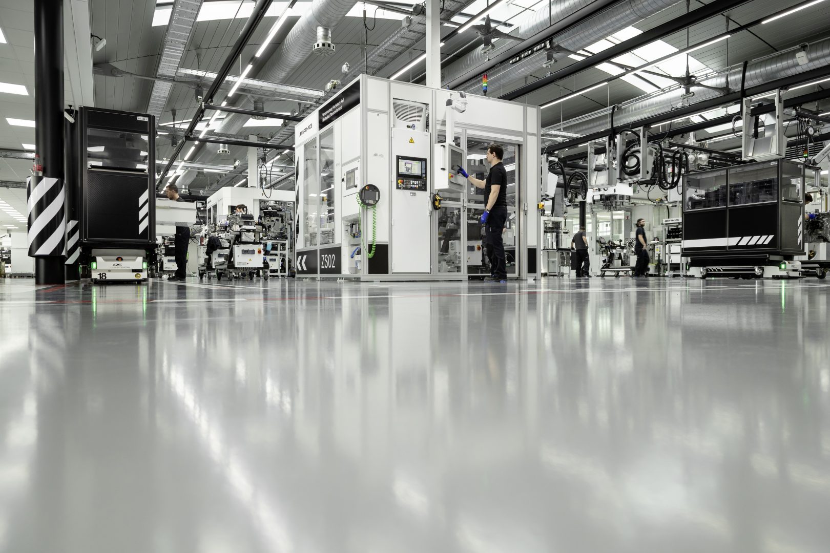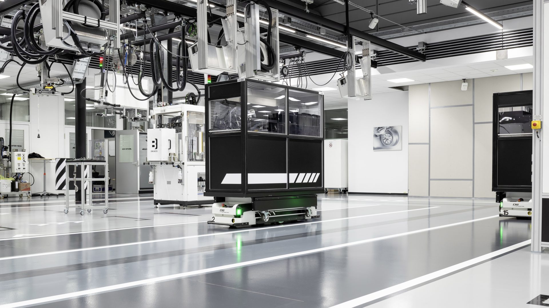 Como se ha señalado la fabricación de este motor responde a la filosofía tradicional de AMG “Un hombre, un motor” pero introduciendo las nuevas tecnologías de fabricación. Así el responsable del montaje dispone de un carro con toda la herramienta e integra una tableta que le facilita asistencia con indicaciones de montaje. Las herramientas utilizadas son del tipo sin cables y con conexión wifi, lo que permite que el montador pueda seleccionar desde su tableta la función exacta que debe realizar, por ejemplo, la máxima presión de atornillado.