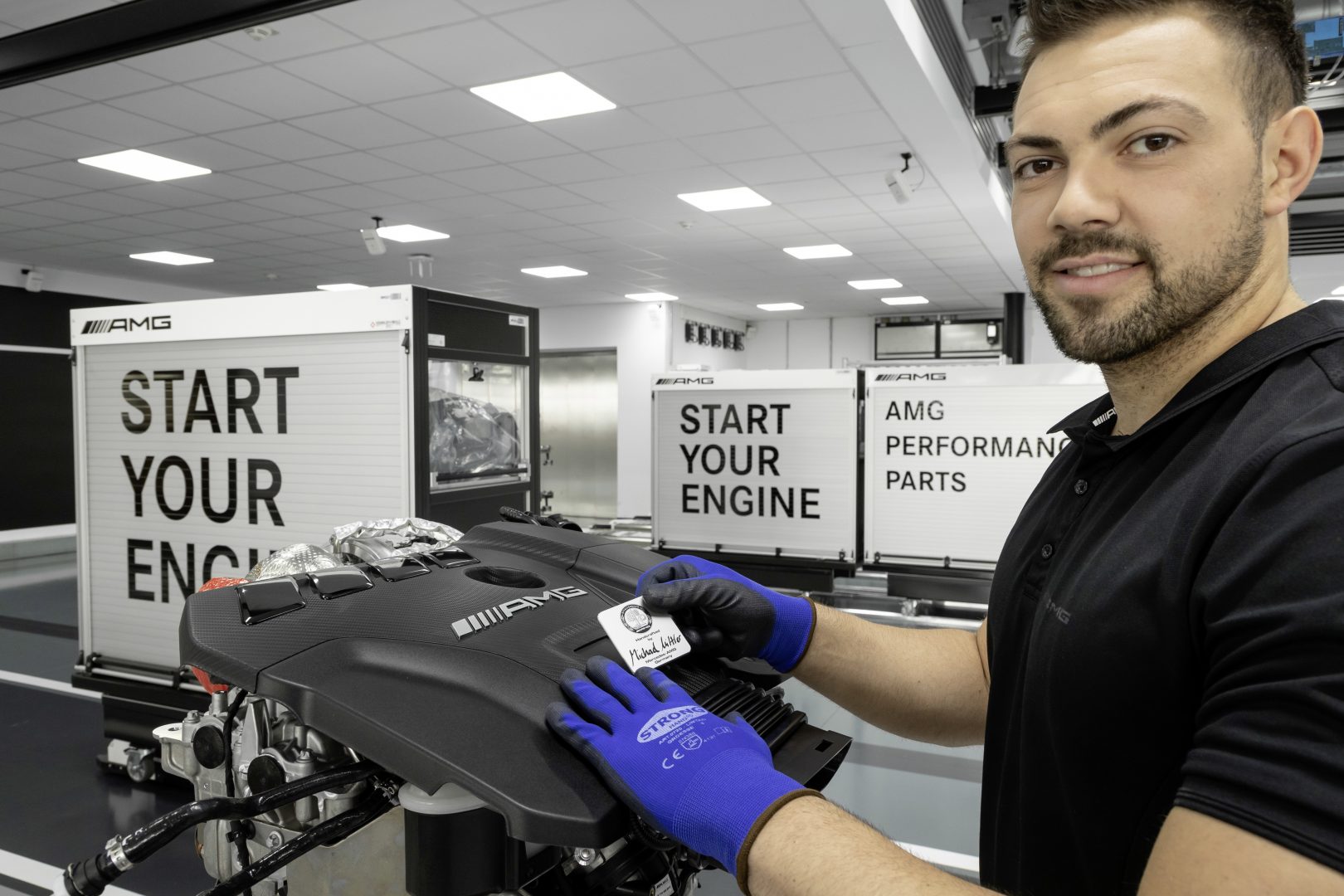 La filosofía de montaje “Un hombre, un motor” forma parte de Mercedes-AMG. Por ello, otro atributo característico del motor M139 es la placa del motor AMG, con la firma del técnico encargado de su montaje.