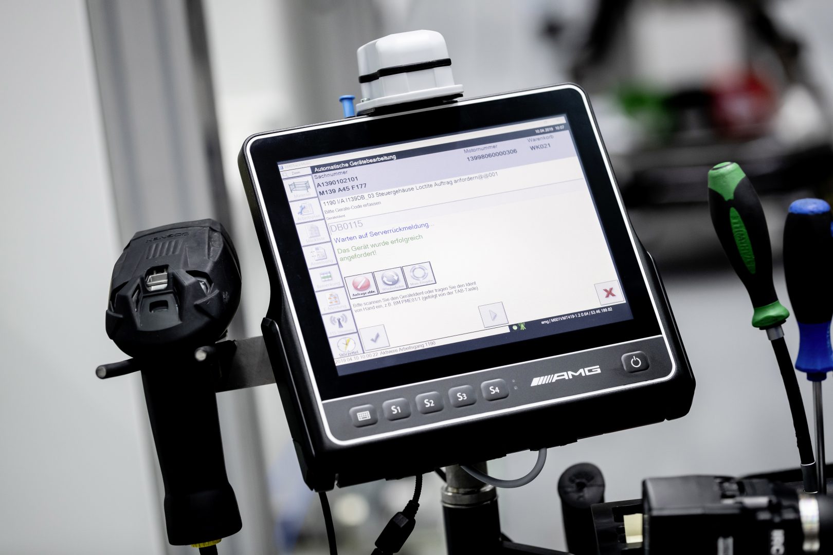 Como se ha señalado la fabricación de este motor responde a la filosofía tradicional de AMG “Un hombre, un motor” pero introduciendo las nuevas tecnologías de fabricación. Así el responsable del montaje dispone de un carro con toda la herramienta e integra una tableta que le facilita asistencia con indicaciones de montaje. Las herramientas utilizadas son del tipo sin cables y con conexión wifi, lo que permite que el montador pueda seleccionar desde su tableta la función exacta que debe realizar, por ejemplo, la máxima presión de atornillado.