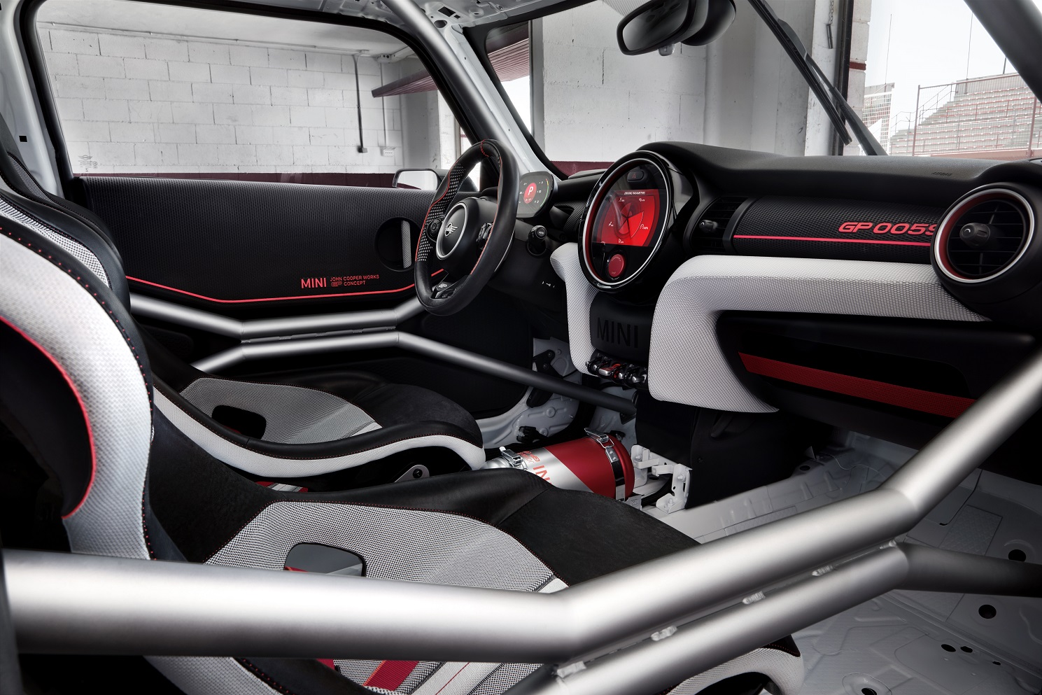 El MINI John Cooper Works GP Concept, busca dotar al MINI de una imagen exterior más expresiva incidiendo además en el peso como en la aerodinámica. En el interior los detalles más significativos son que incorpora jaula antivuelco, asientos envolventes, una cabina con diseño más purista y la ausencia de asientos traseros.