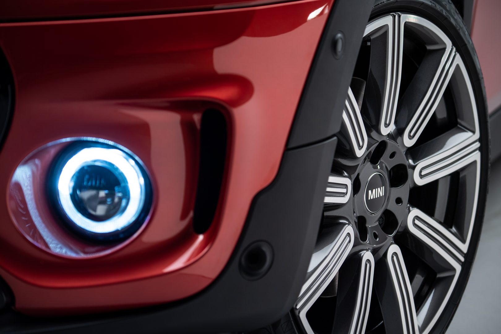En el exterior presenta una nueva parrilla que se extiende por el parachoques, faros traseros tipo LED, que opcionalmente pueden elegirse con el diseño de la Union Jack; los faros antiniebla tipo LED presentan un anillo luminoso, son de serie, mientras que los LED autoadaptables Matrix también son opcionales. En colores de carrocería añade tres nuevas tonalidades, Indian Summer Red metalizado, British Racing Green metalizado o Mini Yours Enigmatic Black metalizado. Los diseños de las llantas también presentan novedades y de serie se incluyen dependiendo de la versión entre 16 y 17 pulgadas.