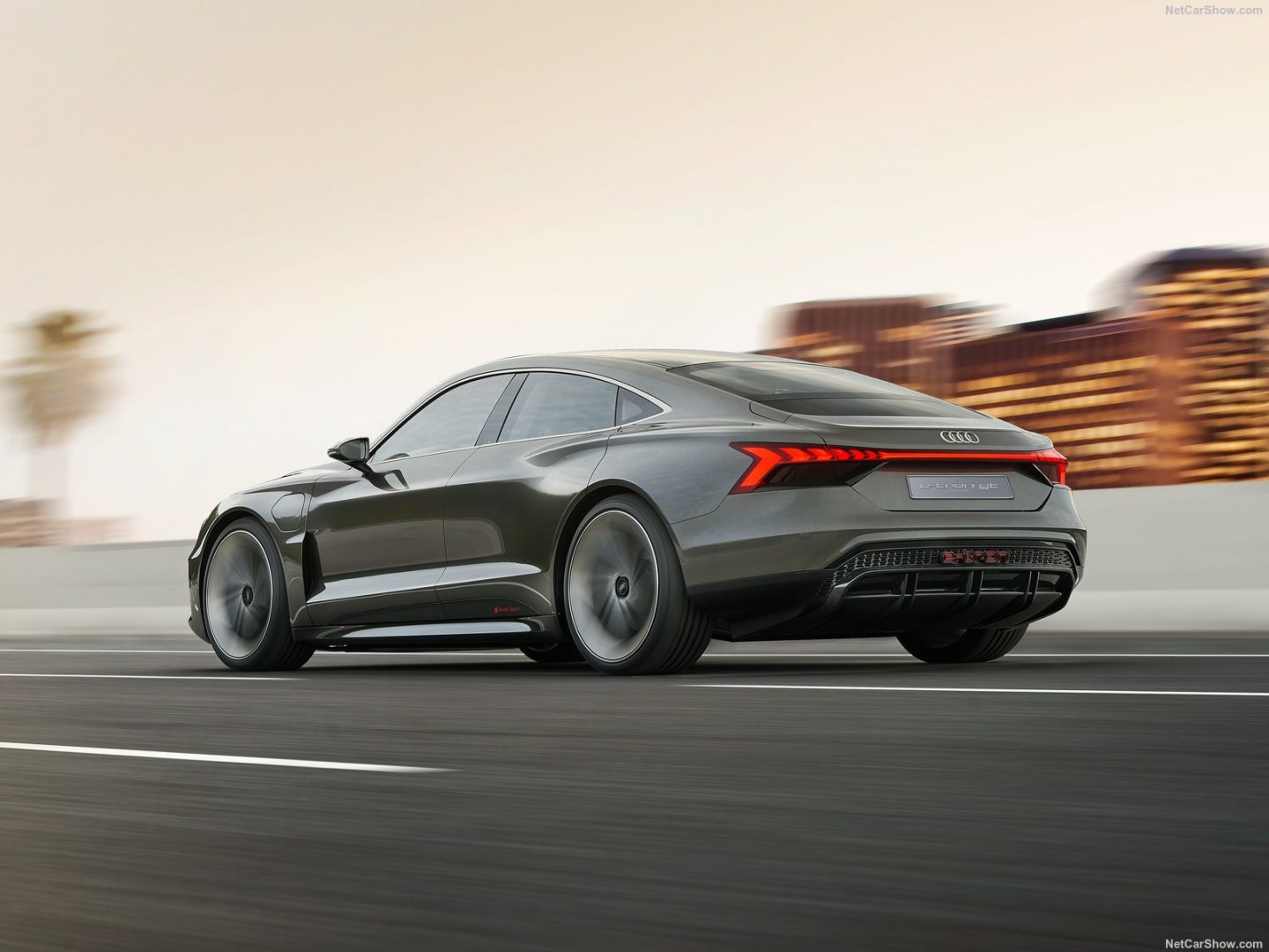 Recientemente Audi presentó en el Salón del Automóvil de Los Ángeles 2018 un prototipo, e-tron GT concept, que adelanta el diseño de una futura berlina-coupé 100% eléctrica. Mide 4,96 metros de largo, 1,96 metros de largo y 1,38 metros de altura.