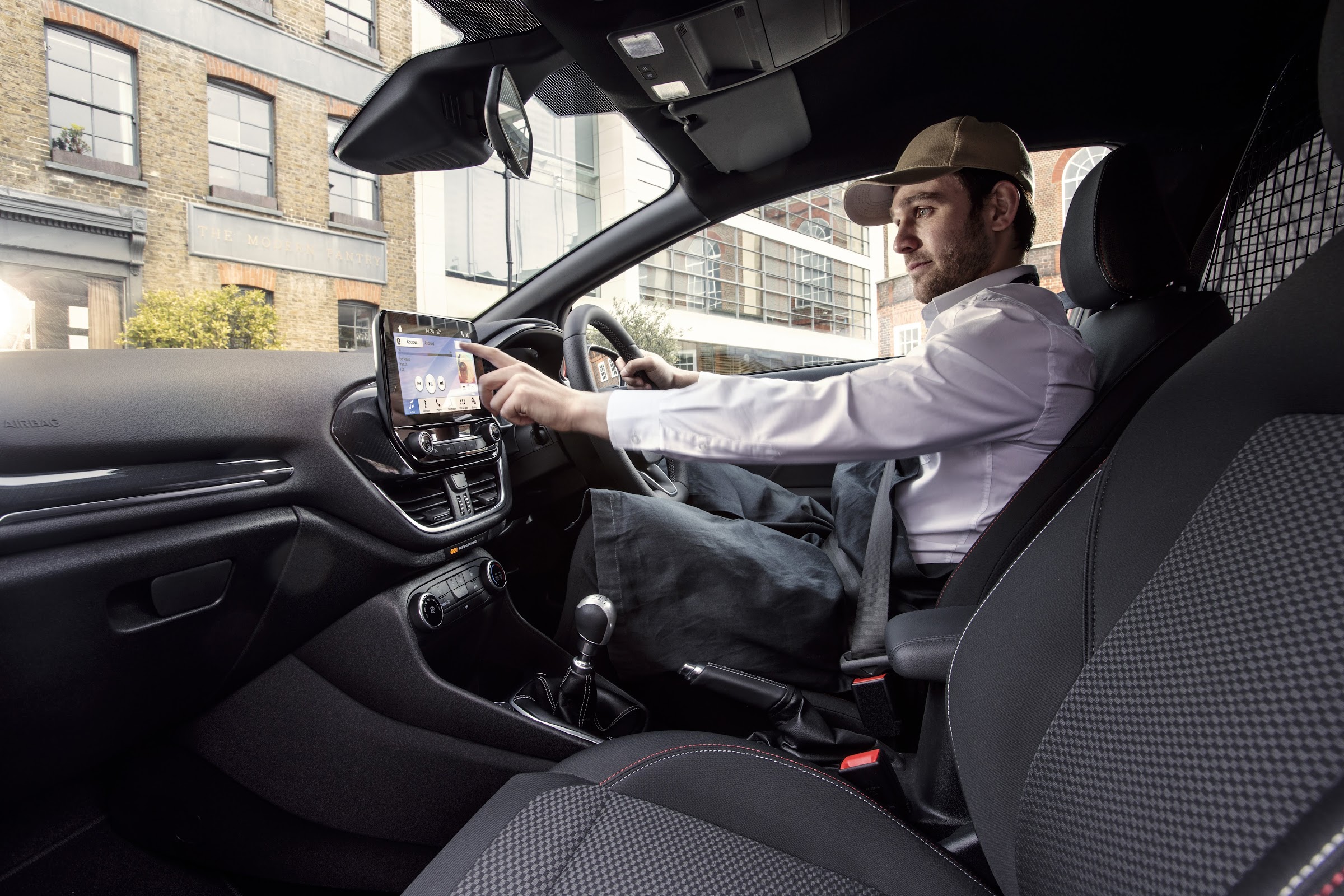 En el interior del Fiesta Van se ofrece el sistema de comunicaciones y entretenimiento SYNC 3 de Ford, compatible con Apple CarPlay y Android Auto, el sistema SYNC 3 se puede especificar como una opción y viene con una pantalla táctil a color de 8 pulgadas. Con la función Ford SYNC AppLink, los conductores pueden acceder a aplicaciones desde su teléfono inteligente utilizando la pantalla en el vehículo, que ahora incluye la popular aplicación de tráfico Waze y Cisco WebEx.