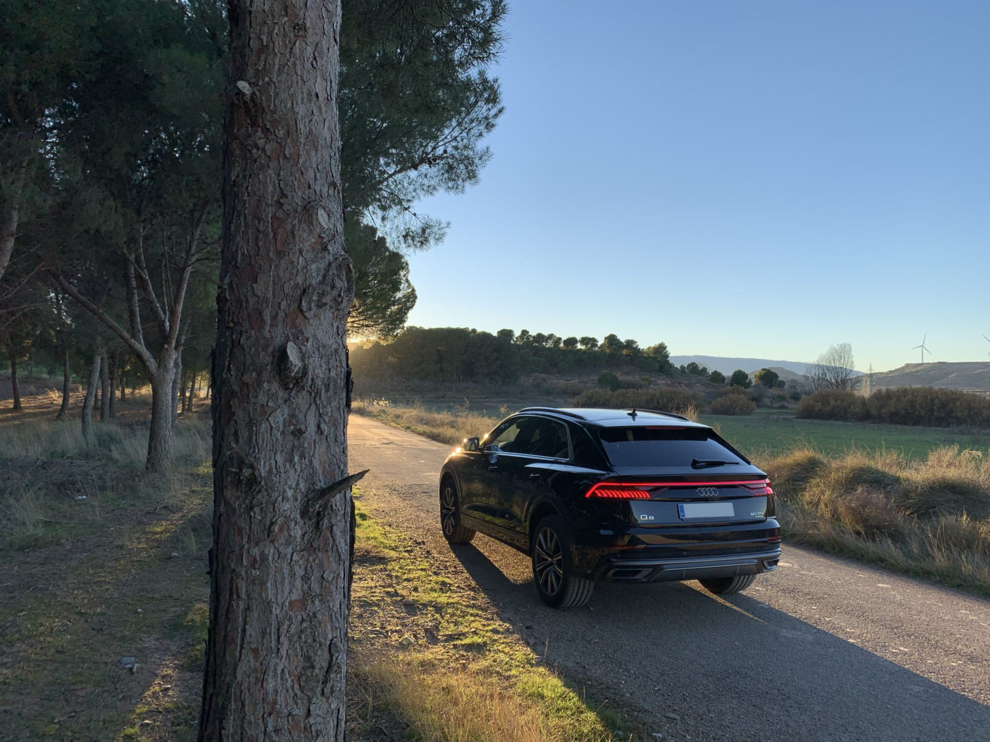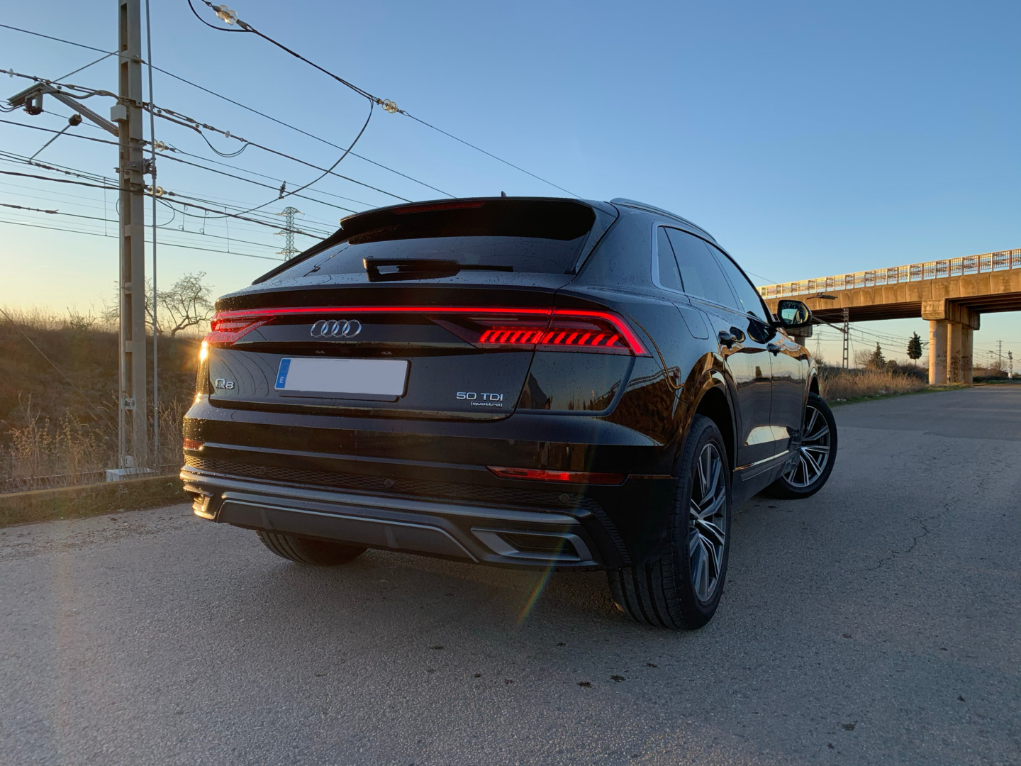 En la parte trasera es donde viene la magia del Q8. Una espectacular tira LED que recorre el coche de lado a lado hace presente de qué vehículo se trata en todo momento, aunque está apagada durante el día. Todas las luces quedan integradas en los pilotos superiores, que además se dividen quedando parcialmente encendidos al abrir al maletero (no como ocurre en el Audi Q3 o en el Q5). Si se equipan las luces principales Matrix LED opcionales, los intermitentes delanteros y traseros son dinámicos y las luces realizan una pequeña animación al abrir o cerrar el coche en la oscuridad: todo un espectáculo.