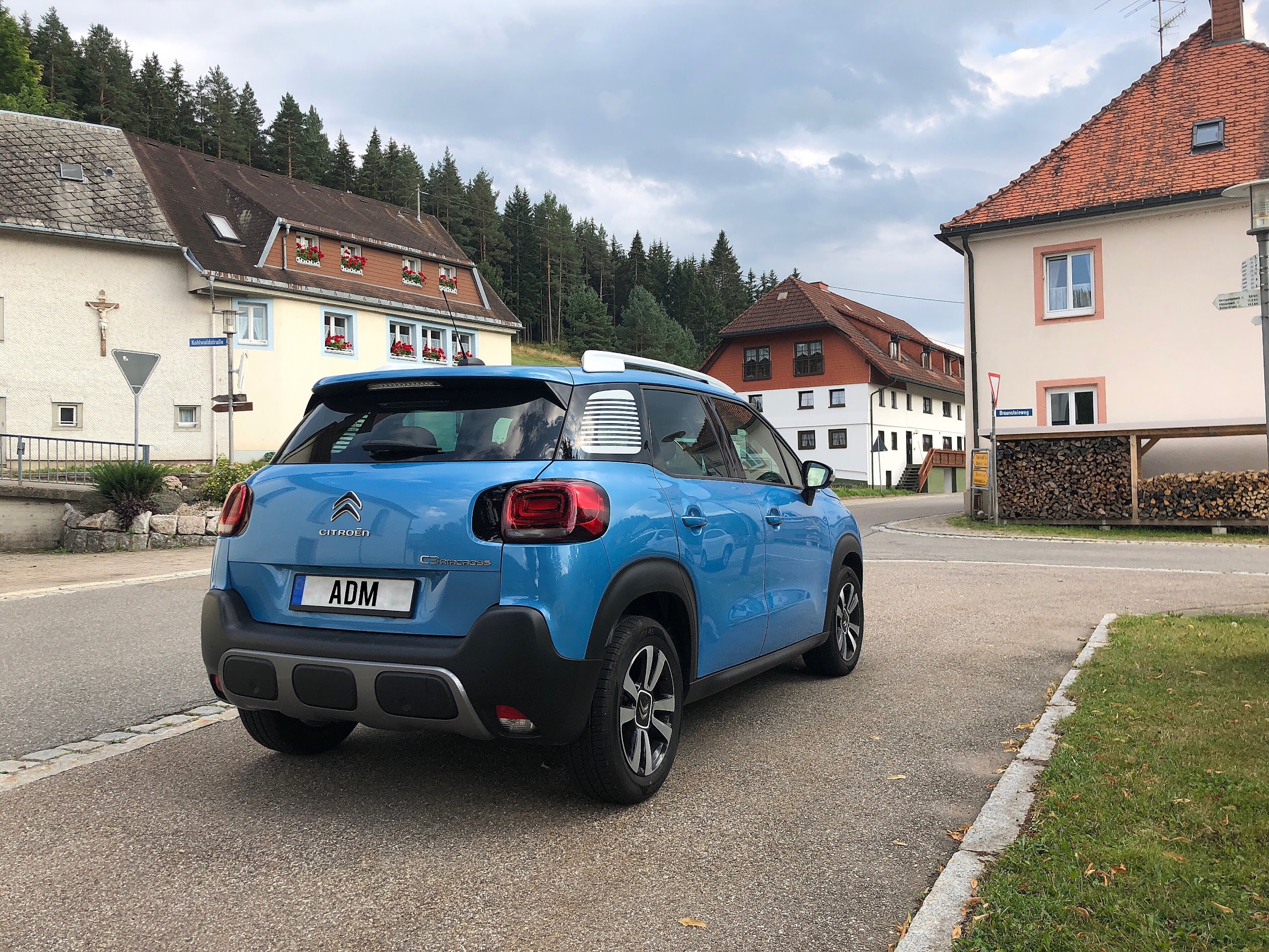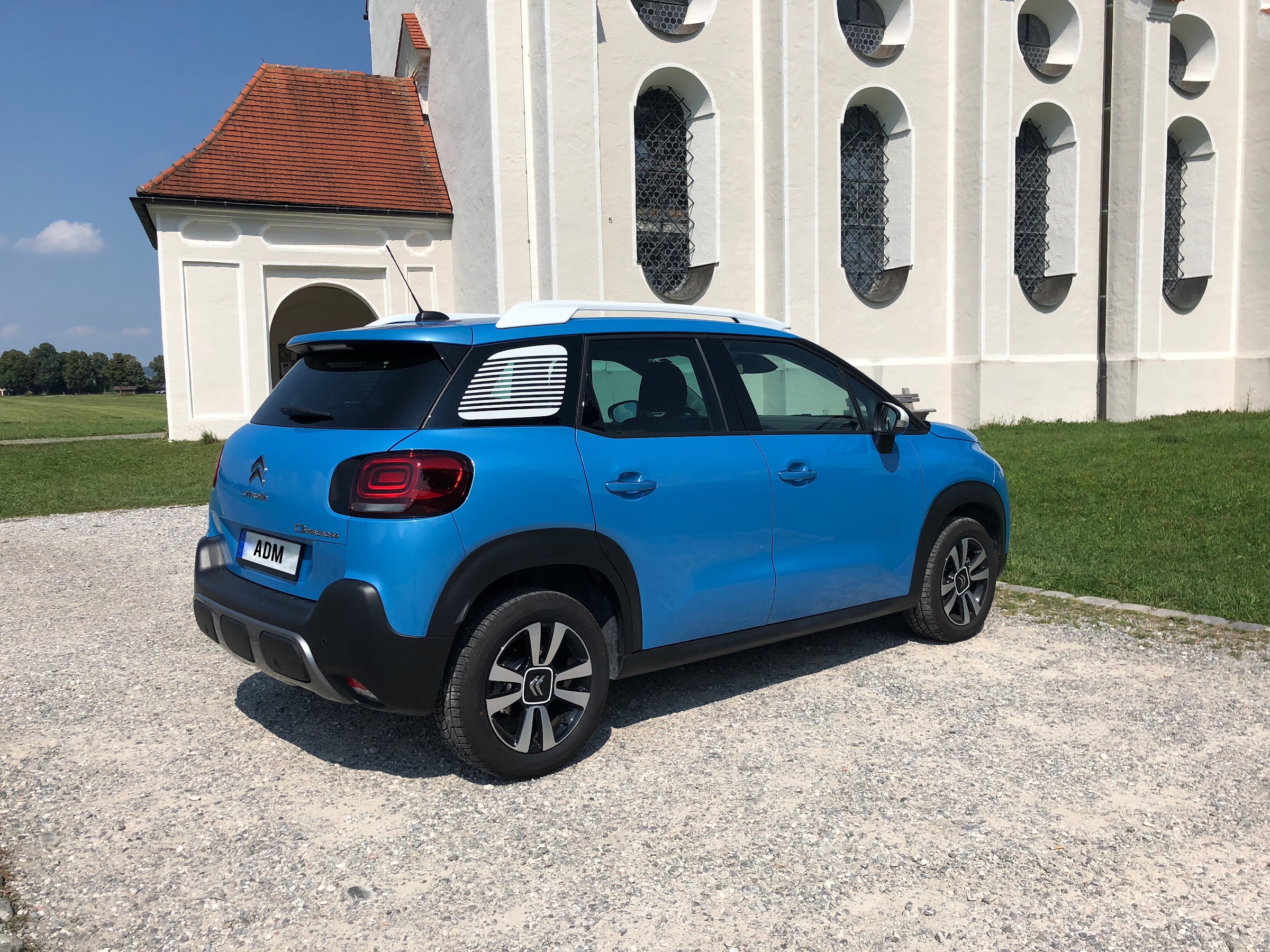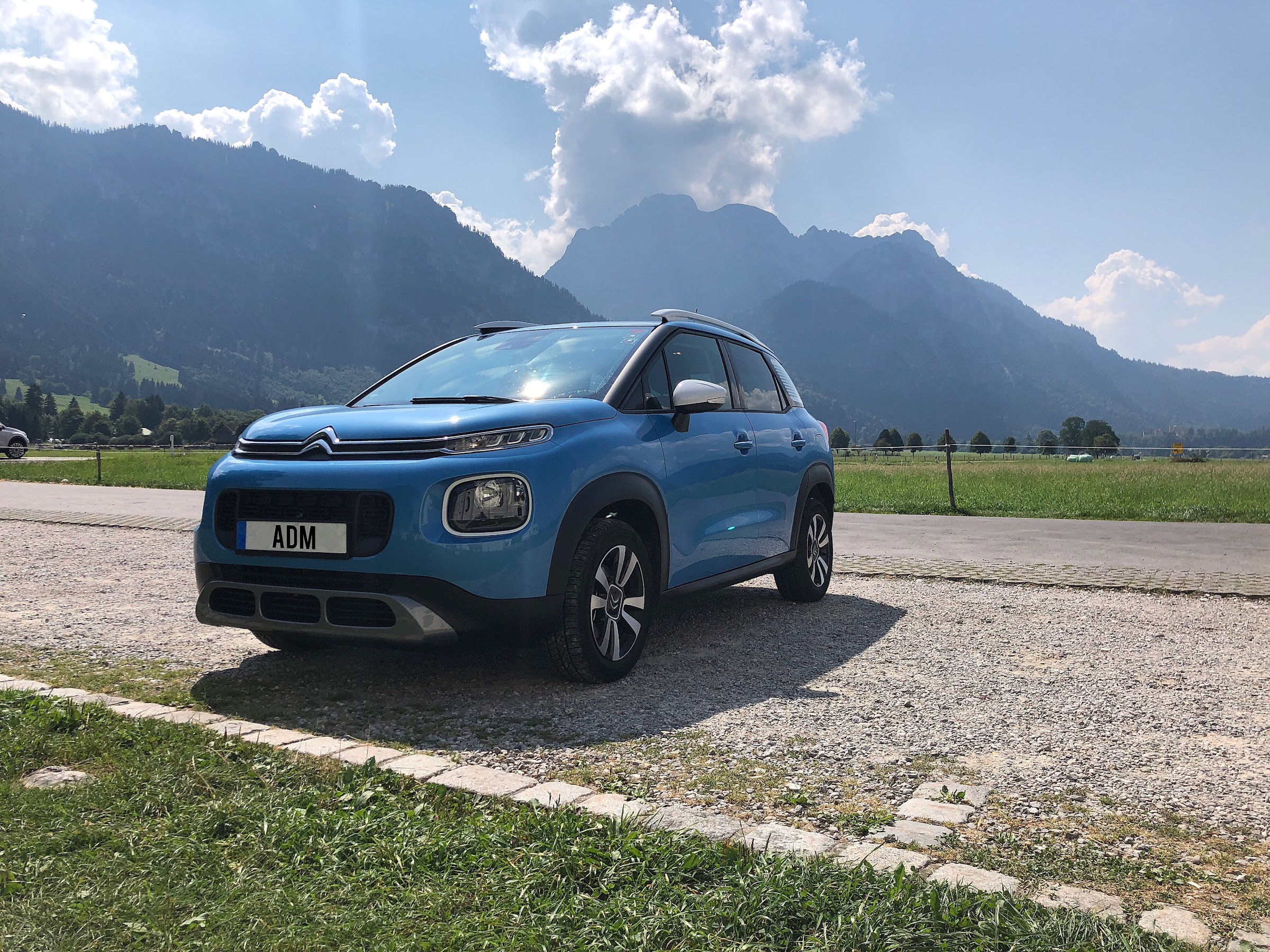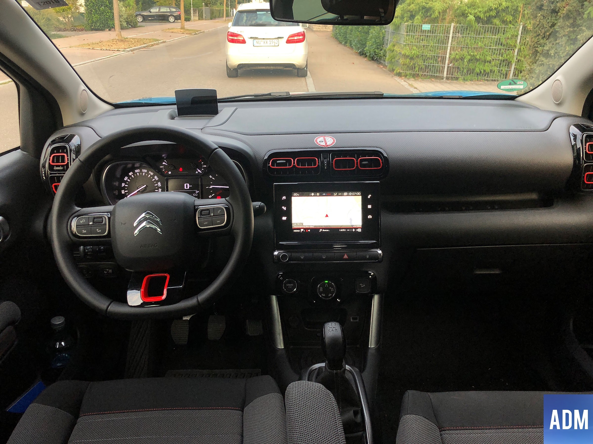 Nuestra unidad estaba configurada con el acabado Shine, el más alto disponible en la gama del C3 Aircross. La configuración de color elegida era “Breathing Blue” con el techo en el color de la carrocería y el paquete de color blanco, que añade las barras de techo y los retrovisores en color blanco para dar un contraste de color a la carrocería y hacerlo más divertido. Opcionalmente se puede elegir el pack plata que sustituye el color blanco por un color plateado. Como extras añadidos al equipamiento de serie en este acabado, contaba con el Pack Techno que añade un punto de carga inalámbrica en la consola central, y unos altavoces mejorados y con el Pack Shine, que añade el Grip Control, del que hablaremos más adelante. Además esta unidad cuenta con Head-Up display, en el que se motraba el límite de velocidad de la vía, así como la velocidad a la que circulabas y las indicaciones del navegador GPS si estaba en funcionamiento. Los sensores de aparcamiento trasero se venden como accesorio pero se puede elegir otro pack que tiene cámara de visión trasera, sensores de parking delanteros y traseros y detector de ángulo muerto.